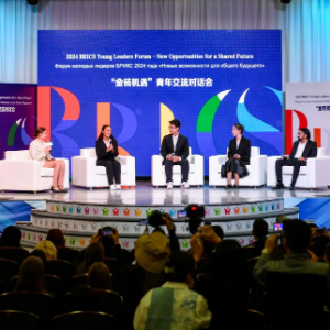 这是2024年9月25日在俄罗斯喀山拍摄的“金砖机遇”青年交流对话会活动现场。新华社记者曹阳摄