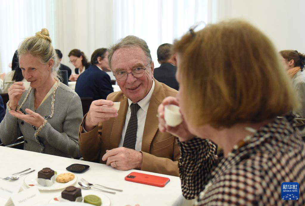 5月21日,在奥地利维也纳,来宾们在“茶和天下·雅集”活动上品茶。新华社记者 贺灿铃 摄