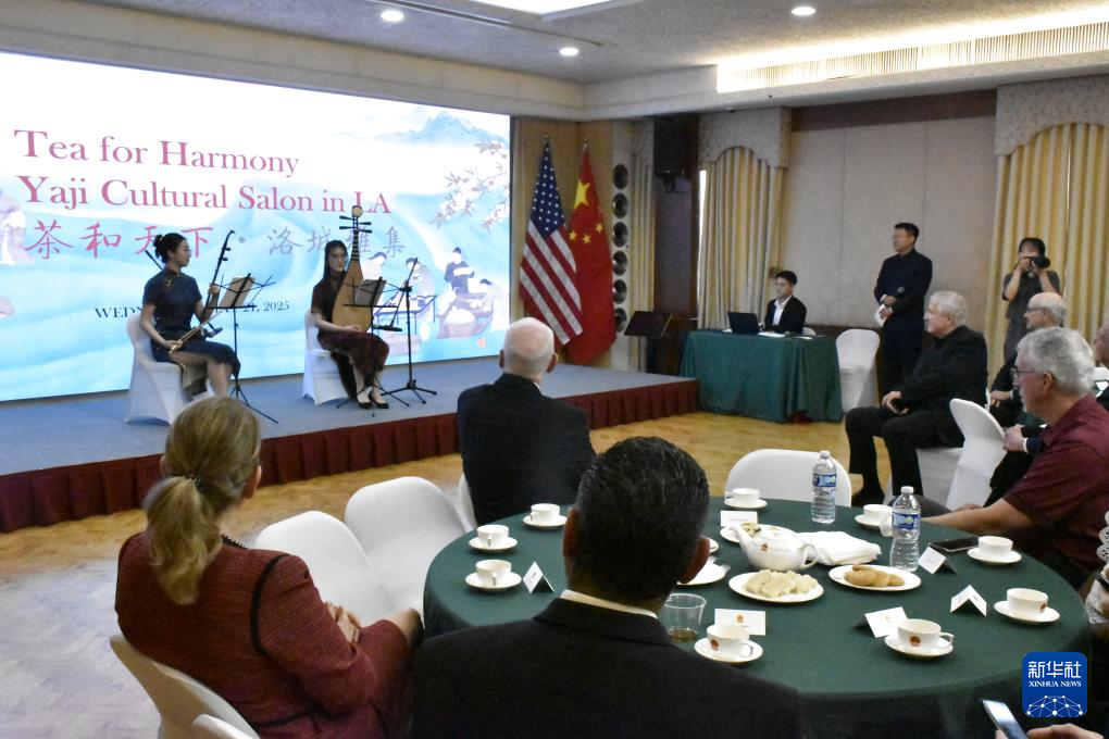 中国驻洛杉矶总领馆21日举办“茶和天下·洛城雅集”活动,邀请60多位来自美国各界的友人品茗赏艺,共叙友谊。