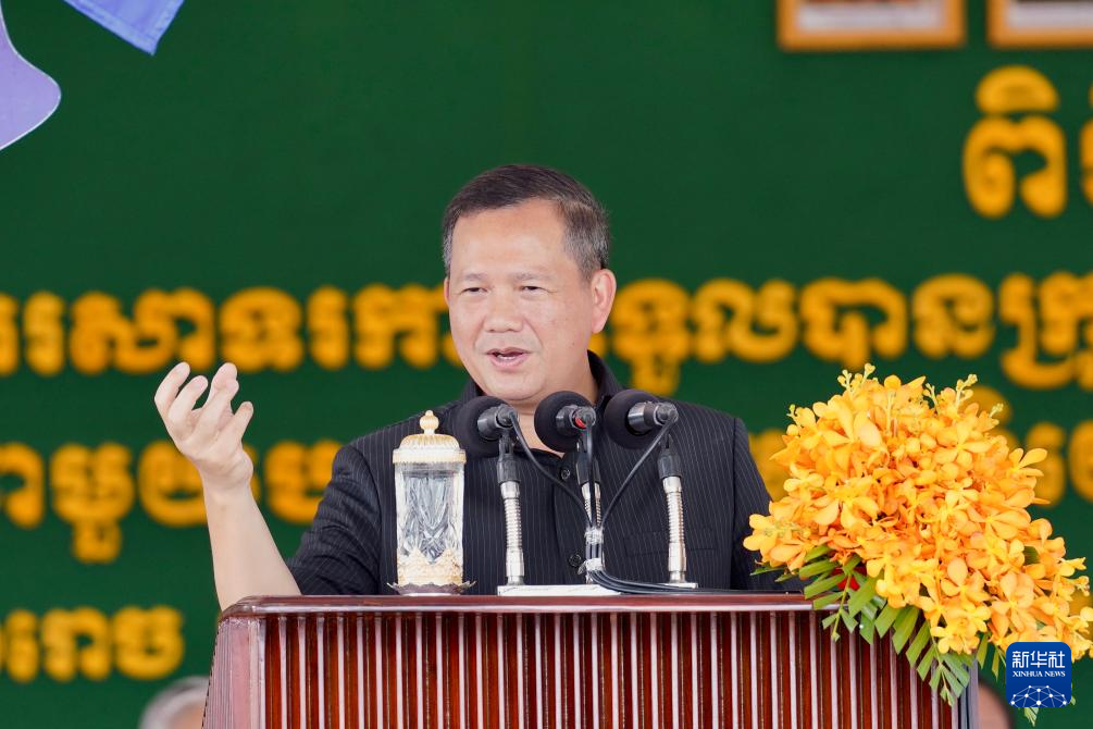 5月22日,柬埔寨首相洪玛奈在西哈努克港经济特区发表讲话。新华社发(尼多拉摄)