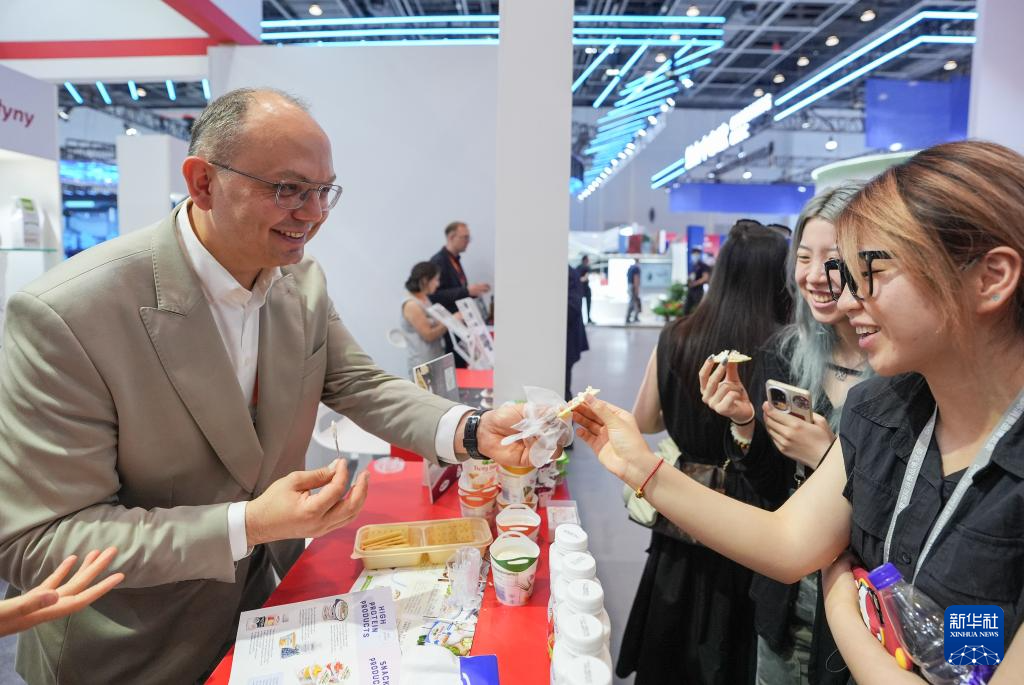 5月22日,波兰参展商在中东欧展馆推介奶酪。