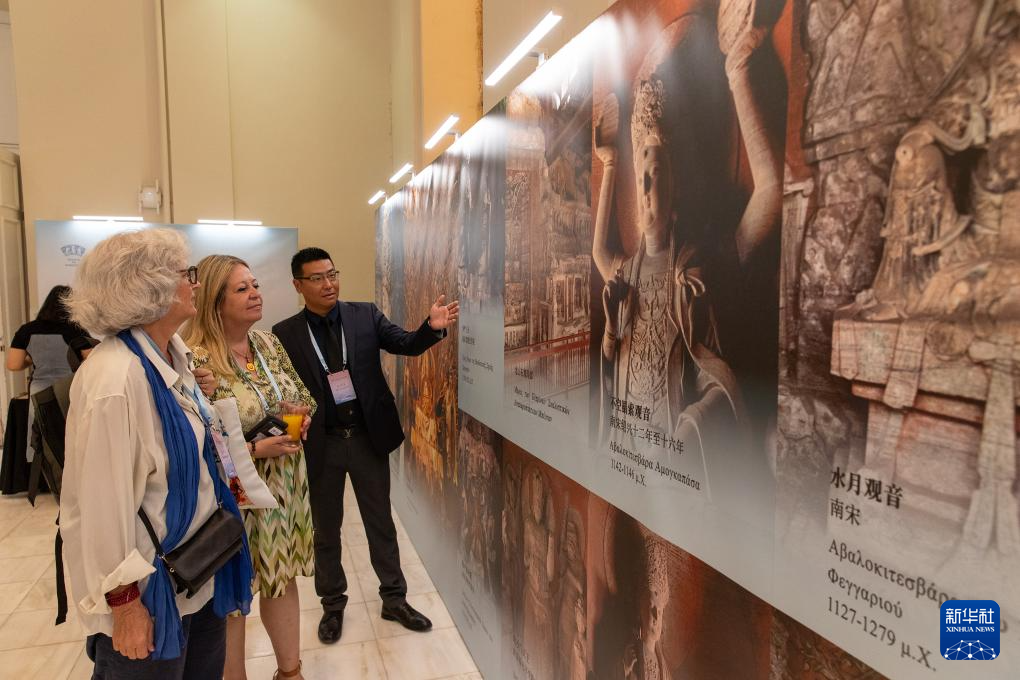 9月25日,在希腊雅典,嘉宾在“古城新韵——重庆对话雅典”城市文明对话活动上观展。新华社发(马里奥斯·罗洛斯摄)