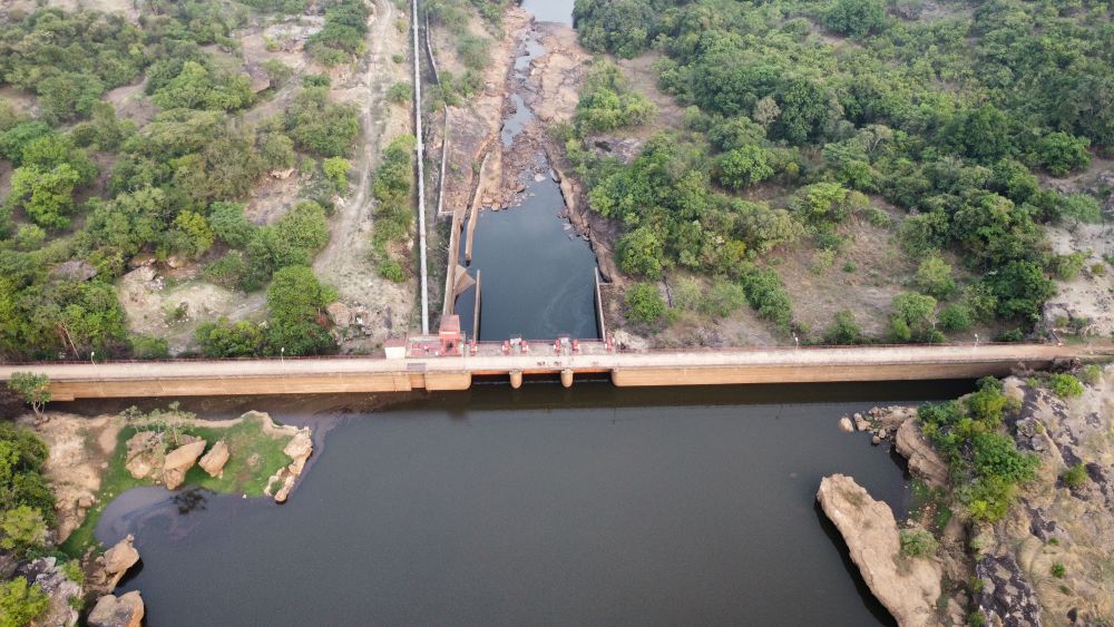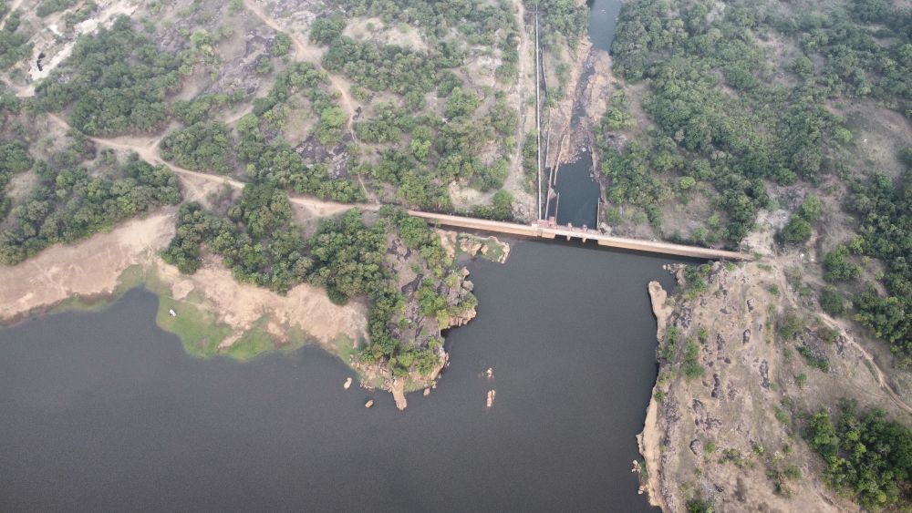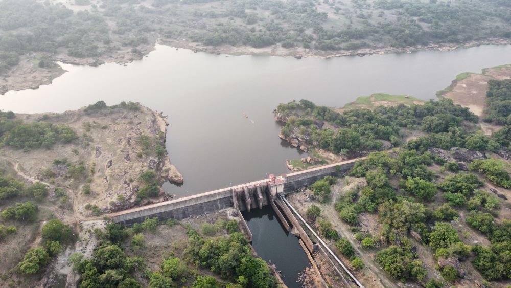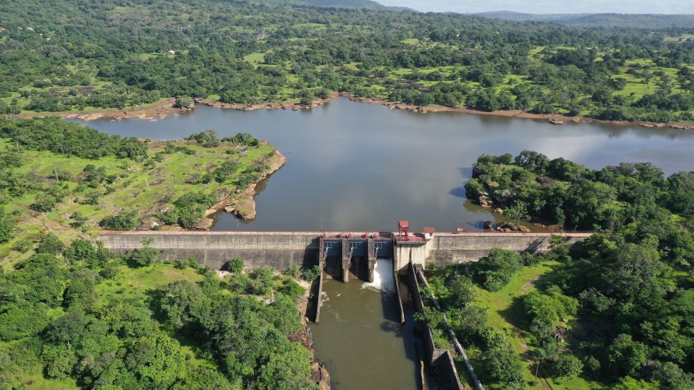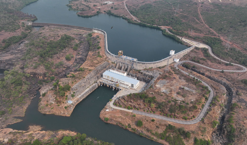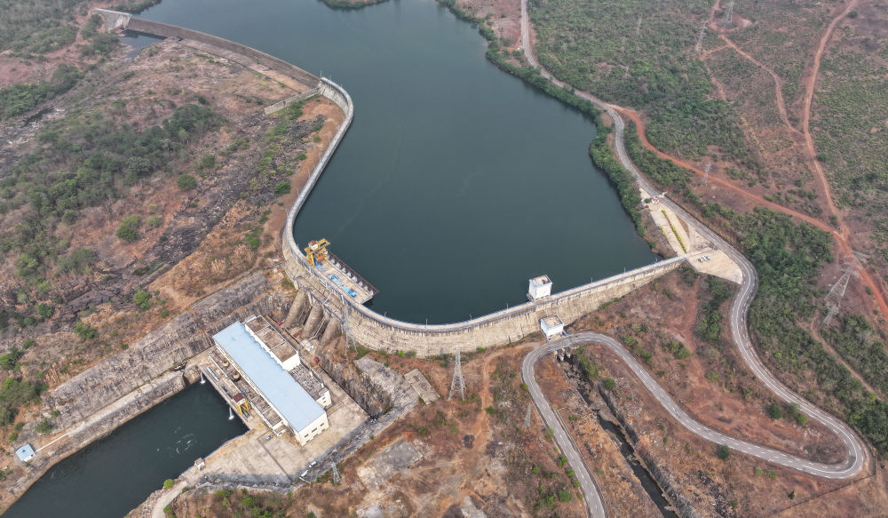 这是2025年4月24日在几内亚杜布雷卡省拍摄的凯乐塔水电站(无人机照片)。