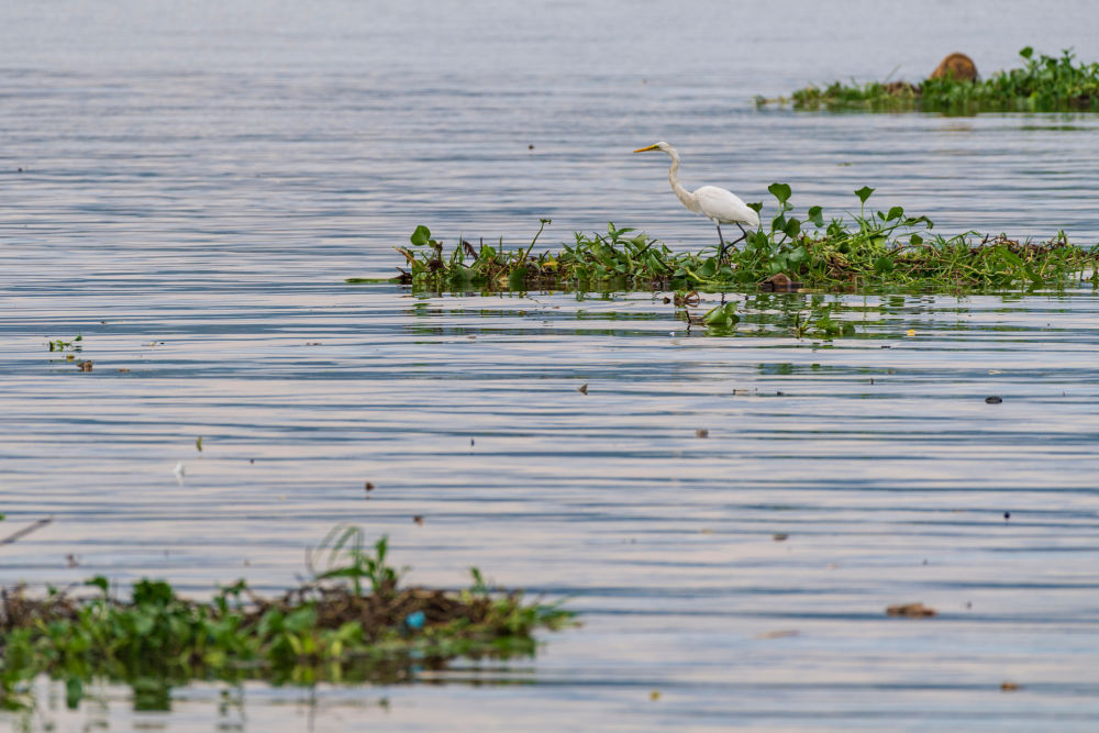 在肯尼亚基苏木,一只白鹭在维多利亚湖上憩息(2026年2月27日摄)。