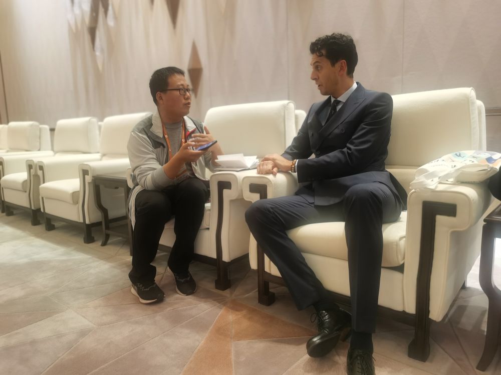世界田径联合会路跑办公室主任庞兹接受新华社记者采访。新华社记者 王恒志 摄