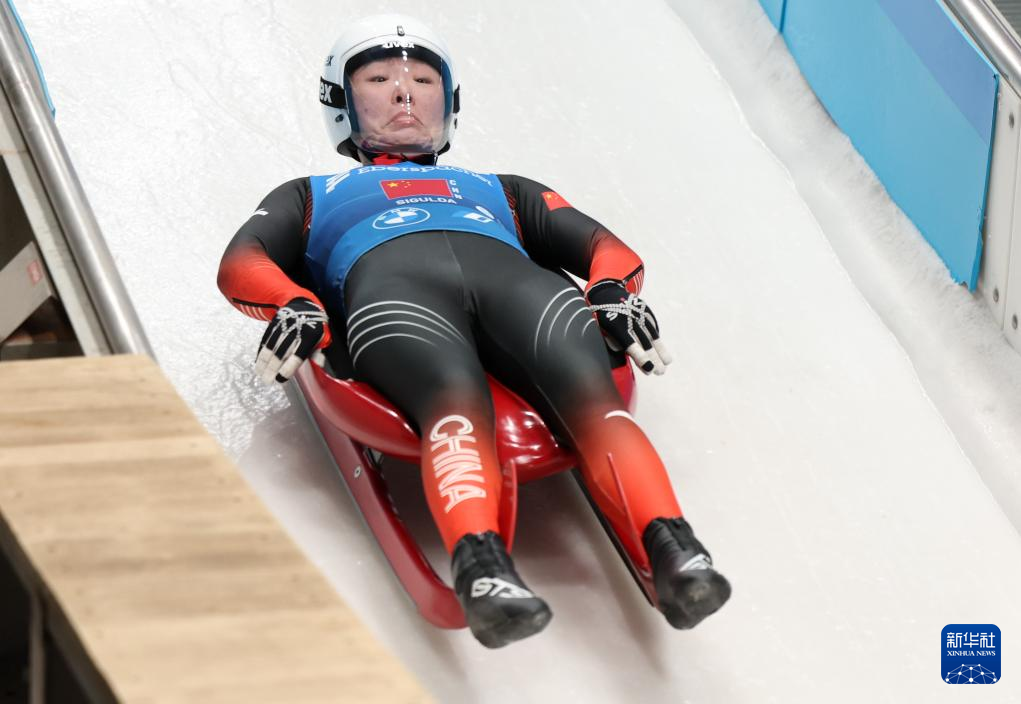 12月17日,居巴依·赛克依/侯硕在比赛中。刘少楠(陕西)/周梁子婷(北京)/居巴依·赛克依(陕西)/侯硕(内蒙古)组合以3分10秒822的总成绩获得亚军。新华社记者 张晨霖 摄