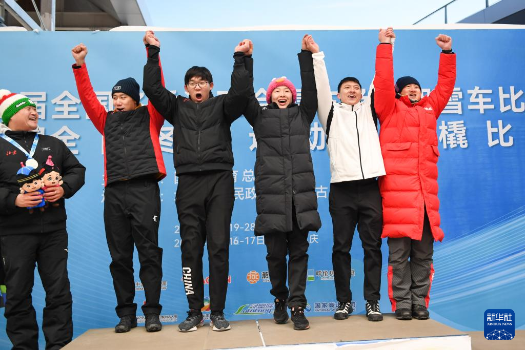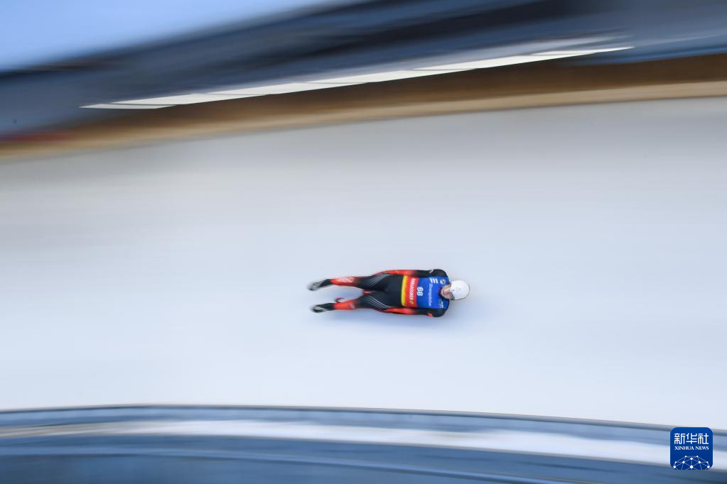 当日,第十四届全国冬季运动会团体接力雪橇项目比赛在国家雪车雪橇中心进行。