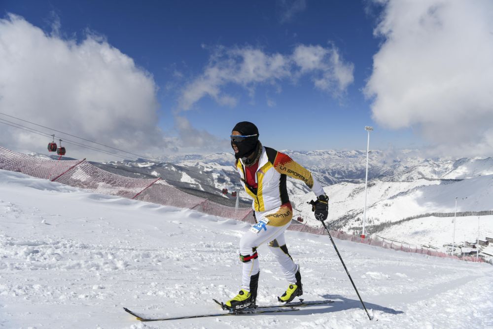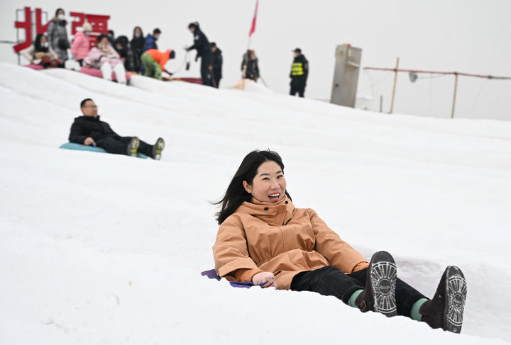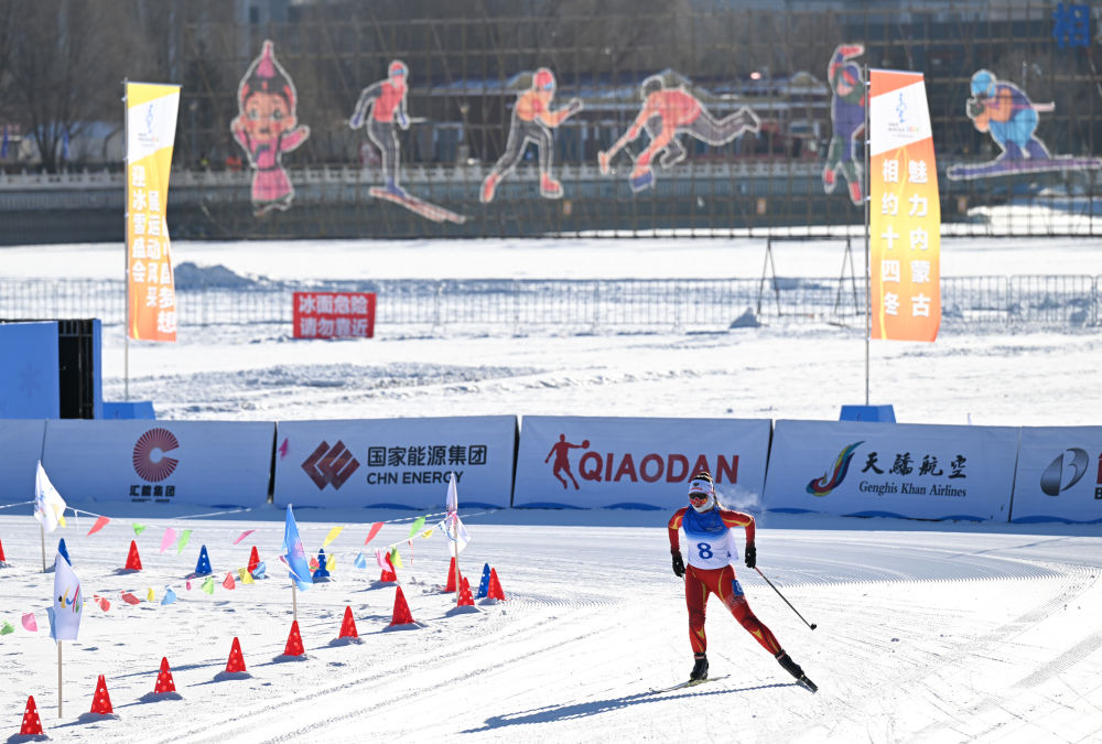 ↑2023年1月15日,在内蒙古呼伦贝尔市新巴尔虎左旗,蒙古族青年布赫·巴雅尔在练习滑雪技巧。新华社记者费茂华摄