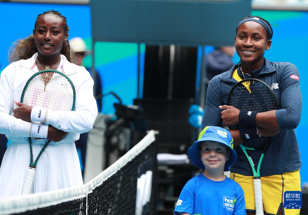 1月19日,高芙(右)与帕克斯(左)在赛前合影。新华社记者 马平 摄