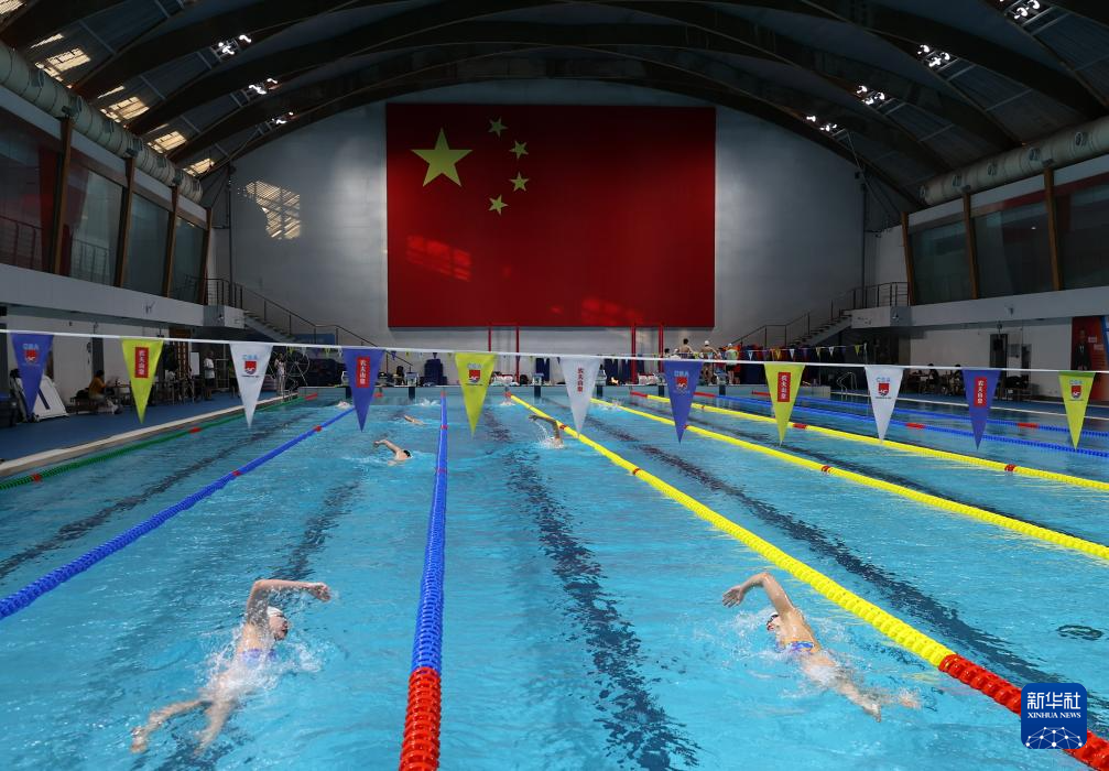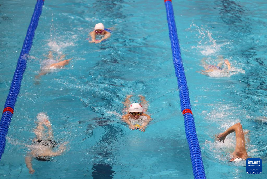 当日,中国游泳队在北京国家体育总局开展日常训练。