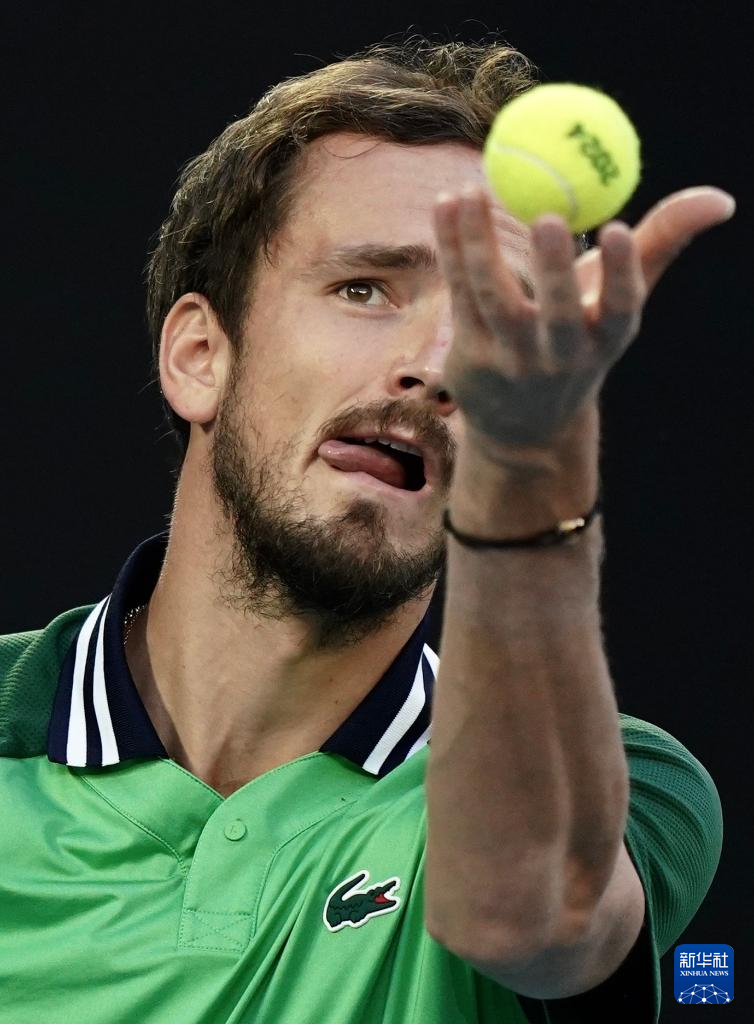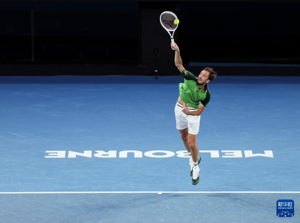 1月28日,梅德韦杰夫在比赛中发球。新华社记者 马平 摄