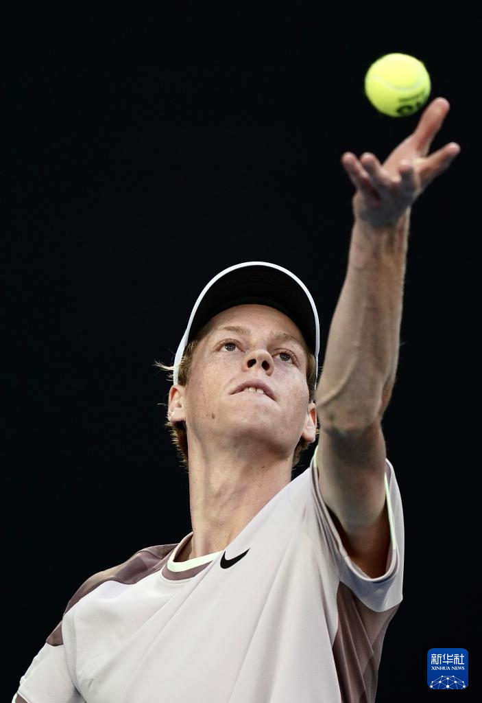 1月28日,辛纳在比赛中发球。新华社记者 王申 摄