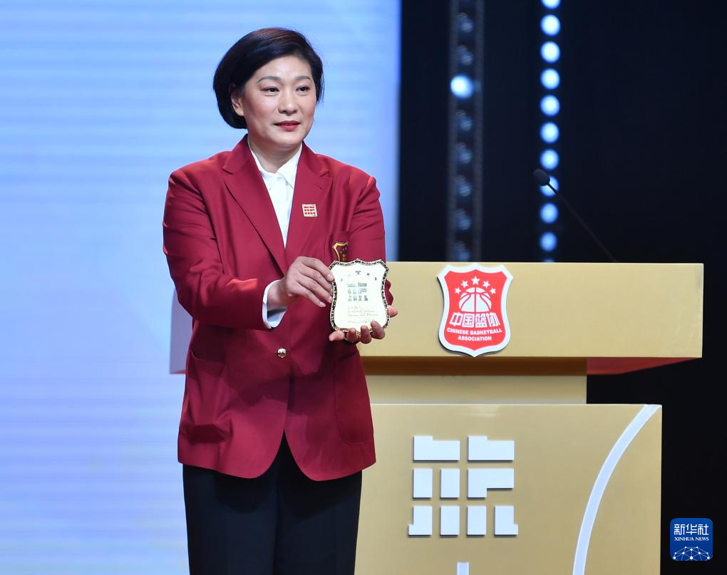 2月4日,2023年中国篮球名人堂入堂人物李昕在仪式上展示徽章。新华社记者 张博文 摄