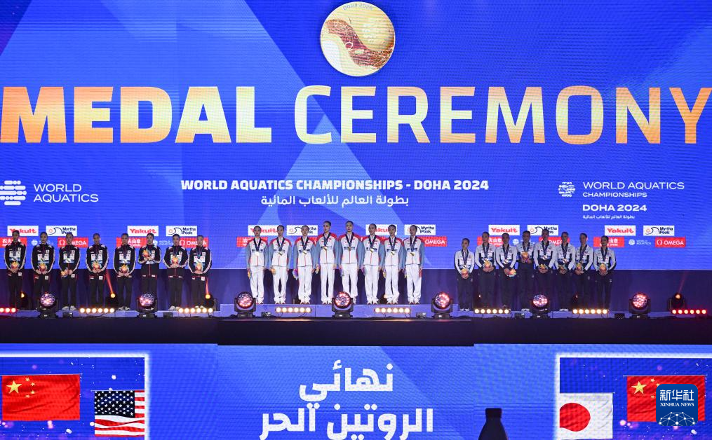 当日,在卡塔尔多哈举行的2024年世界游泳锦标赛花样游泳集体自由自选决赛中,中国队以339.7604分的成绩夺得冠军。