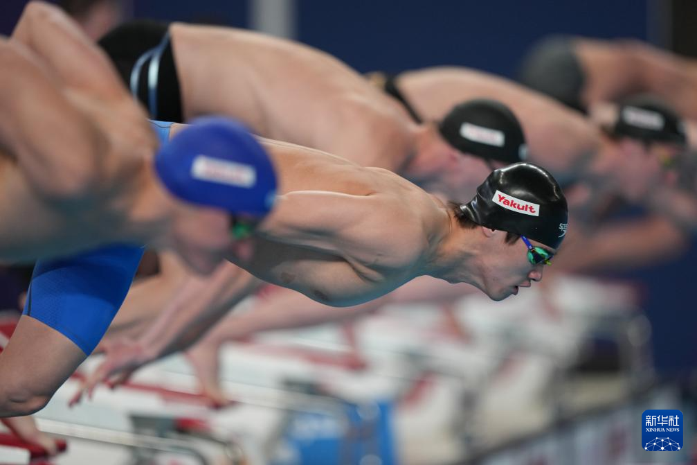 2月11日,中国队选手潘展乐(右二)在比赛中出发。新华社记者 薛宇舸 摄