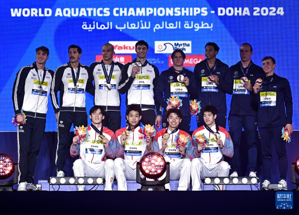 当日,在卡塔尔多哈进行的2024年世界游泳锦标赛游泳项目男子4X100米自由泳接力决赛中,中国队以3分11秒08的成绩夺冠。意大利队和美国队分获银牌和铜牌。中国队第一棒潘展乐游出46秒80的成绩,打破由罗马尼亚名将波波维奇保持的男子100米自由泳世界纪录,同时也刷新了游泳世锦赛赛会纪录和亚洲纪录。