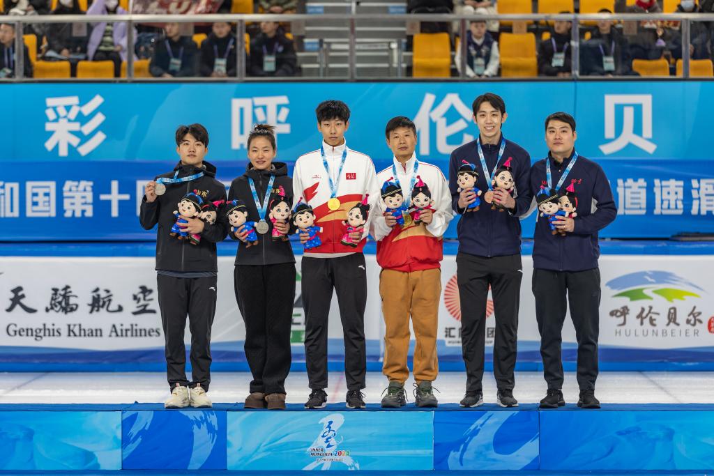 当日,第十四届全国冬季运动会短道速滑(公开组)男子1500米决赛在内蒙古呼伦贝尔市海拉尔区内蒙古冰上运动训练中心短道速滑馆举行。吉林队选手孙龙以2分12秒116的成绩获得冠军,山东队选手李文龙和北京队选手马威分别以2分13秒299和2分13秒499的成绩获得亚军和季军。