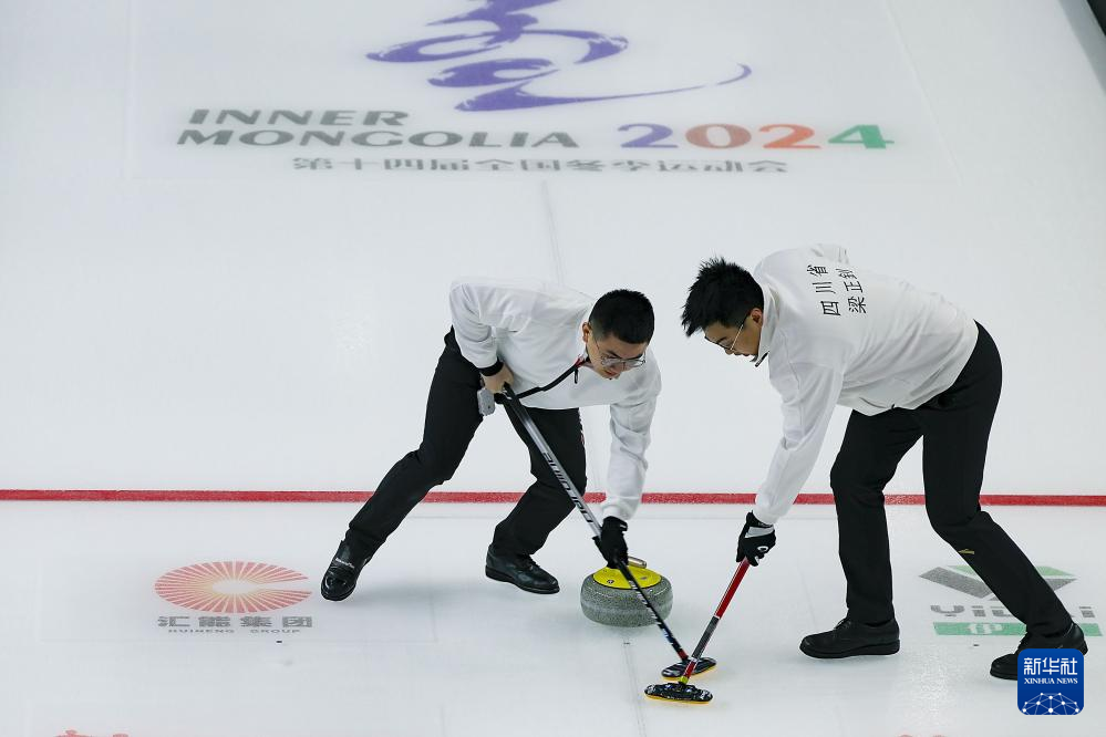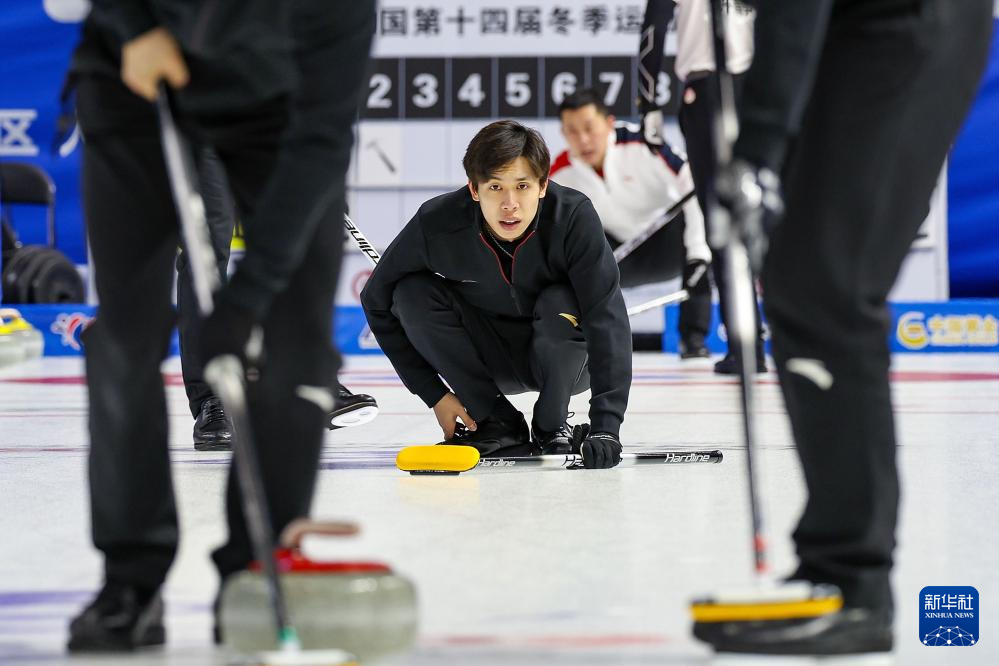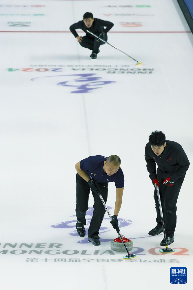 当日,第十四届全国冬季运动会冰壶项目公开组男子循环赛第二轮比赛在内蒙古冰上运动训练中心举行。
