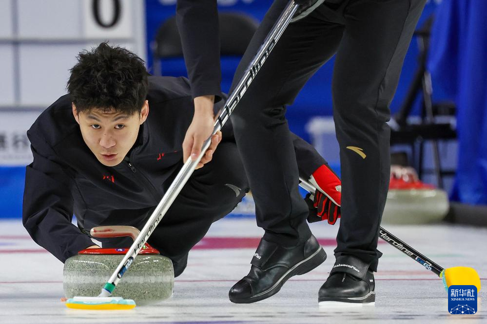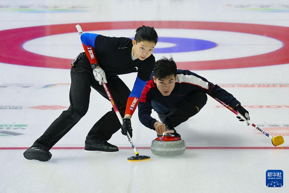 2月22日,四川队选手王靖元(左)、梁正釗在比赛中。最终,四川队8比9不敌北京队。新华社记者 姜帆 摄