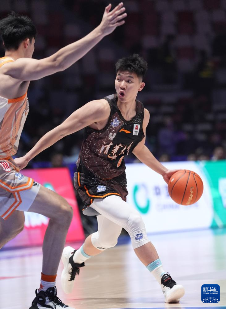 3月2日,清华大学队球员杨曦皓(右)在比赛中突破。新华社记者 孟永民 摄