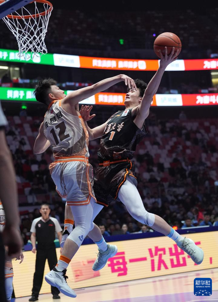 3月2日,清华大学队球员周睿亨(上左)在比赛中突破投篮。新华社记者 孟永民 摄