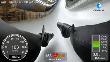 2023年12月17日,陕西队选手胡慧兰在国家雪车雪橇中心举行的第十四届全国冬季运动会女子单人雪橇项目比赛中。