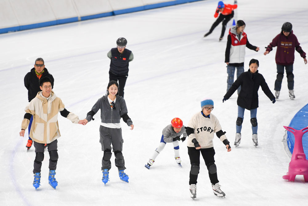 2024年2月16日,滑冰爱好者在北京国家速滑馆滑冰。