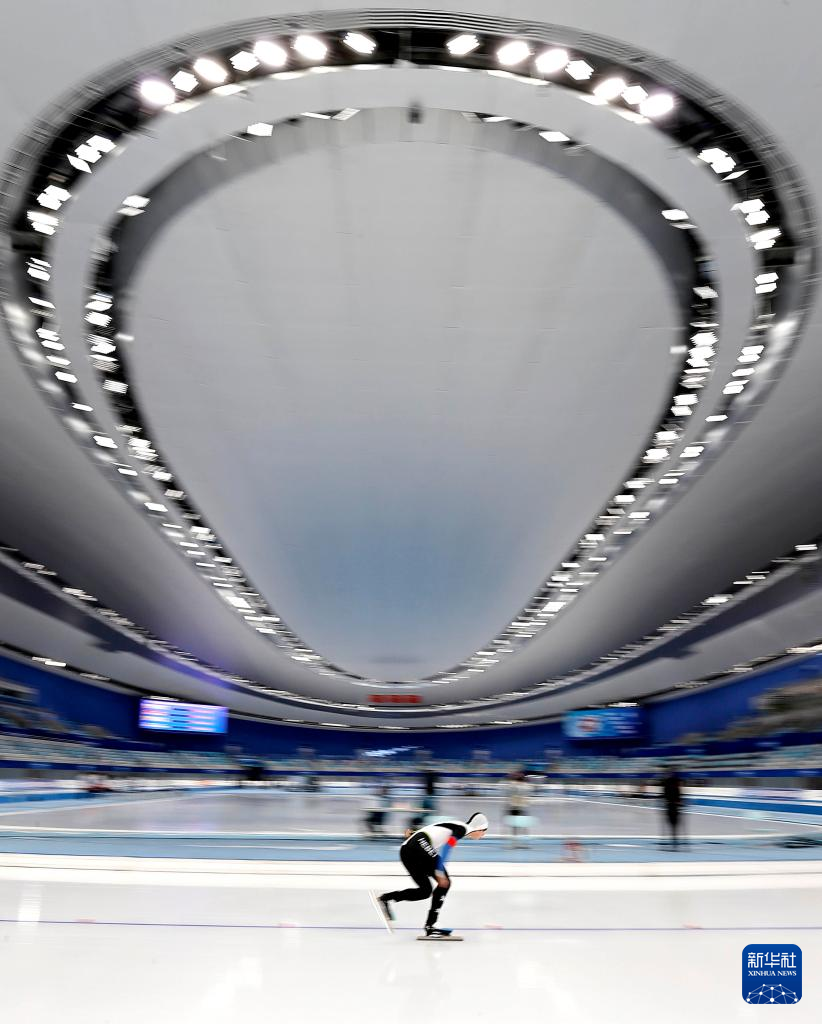 当日,2023-2024赛季全国速度滑冰锦标赛在北京国家速滑馆开赛。