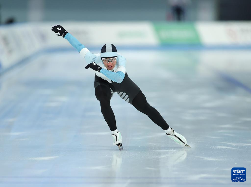 3月14日,新疆维吾尔自治区体育局冬季运动管理中心选手叶尔达那·金恩斯别克在男子全能5000米比赛中。他以6分43秒88的成绩获得该项目第二名。新华社记者 丁旭 摄