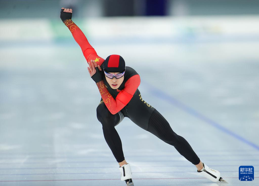 3月14日,河北省体育局冬季运动中心选手李禹豪晨在男子全能5000米比赛中。他以6分45秒15的成绩获得该项目第三名。新华社记者 丁旭 摄
