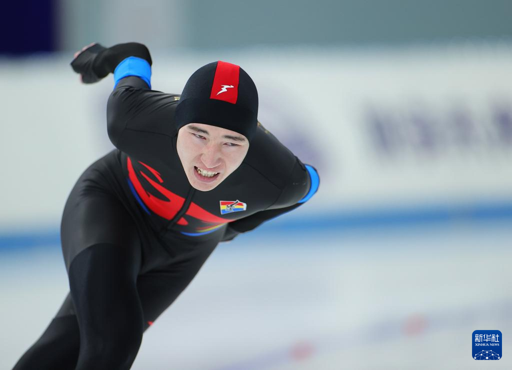 3月14日,辽宁省冬季运动管理中心选手叶尔加那提·拜山在男子全能5000米比赛中。他以6分43秒06的成绩获得该项目第一名。新华社记者 丁旭 摄