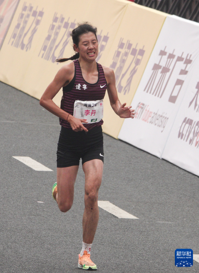 3月24日,李丹在比赛中。最终她以2小时27分32秒的成绩获得全国马拉松锦标赛(第一站)女子组第二名。新华社记者 杨磊 摄