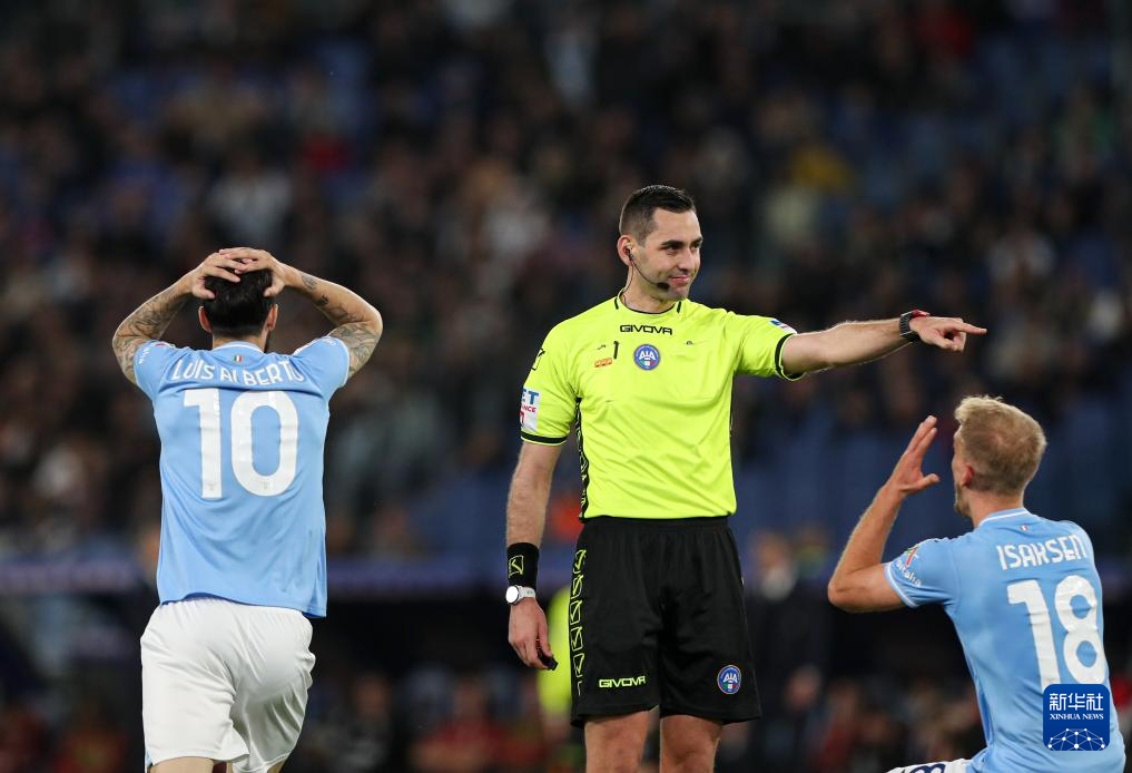 3月30日,拉齐奥队球员伊萨克森(右)与阿尔贝托(左)在比赛中不满判罚。