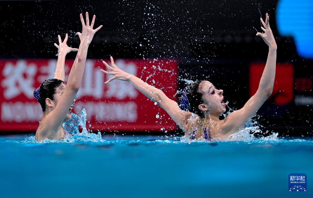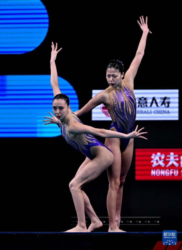 当日,在国家游泳中心“水立方”举行的2024年花样游泳世界杯(北京站)女子双人自由自选比赛中,中国组合林彦含/徐汇妍以221.0156分的成绩获得亚军。