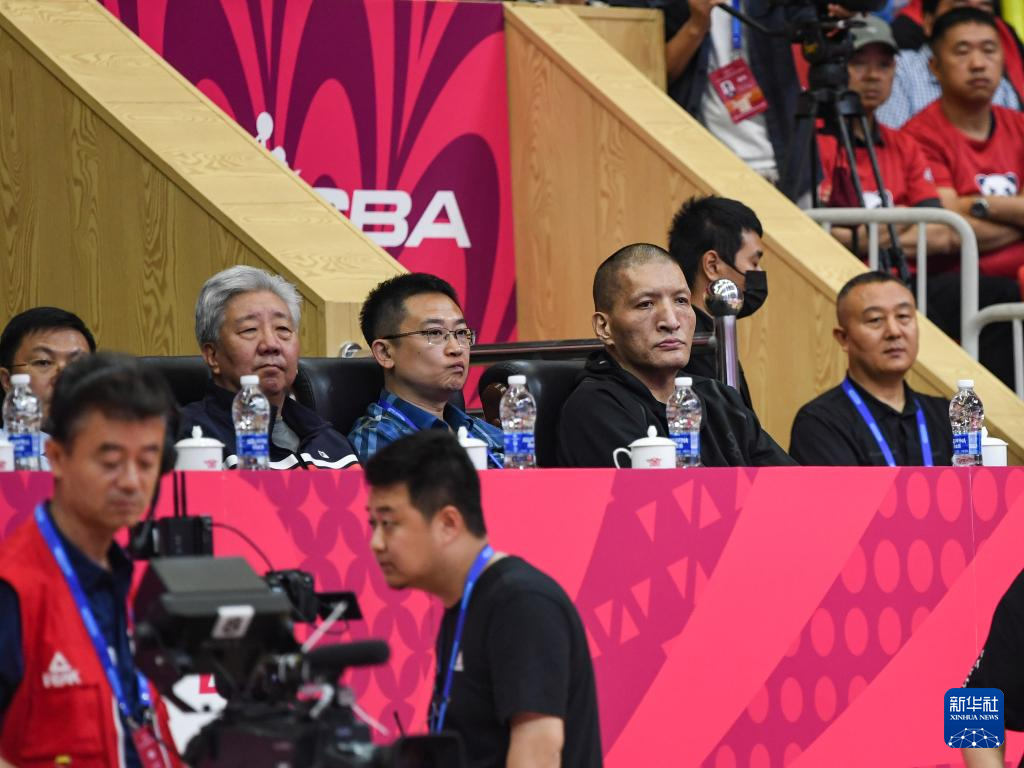 4月16日,内蒙古篮协主席巴特尔(右二)现场观战。新华社记者 王曦 摄