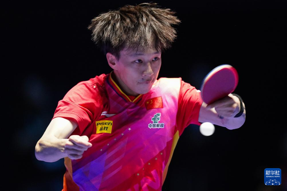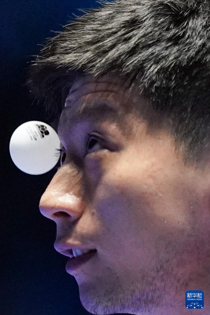 4月21日,马龙在比赛中回球。新华社记者 王申 摄