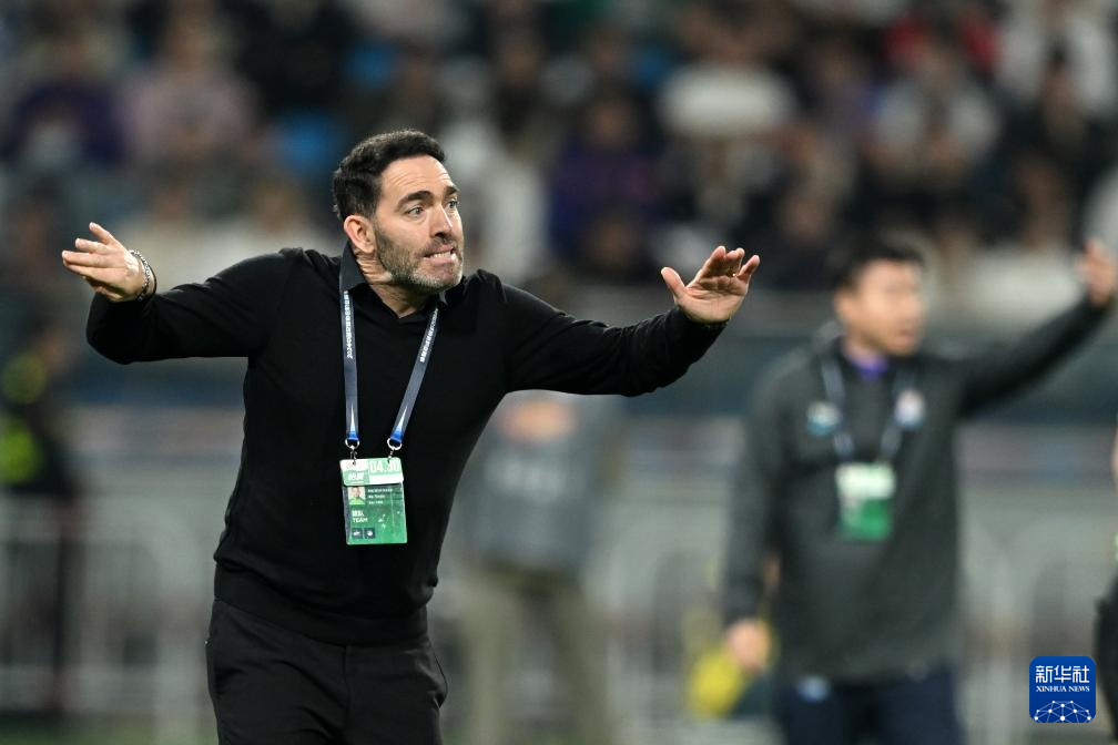 4月30日,北京国安队主教练苏亚雷斯在场边指挥。新华社记者 赵子硕 摄