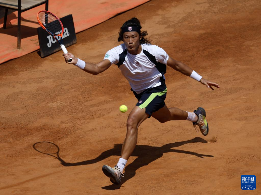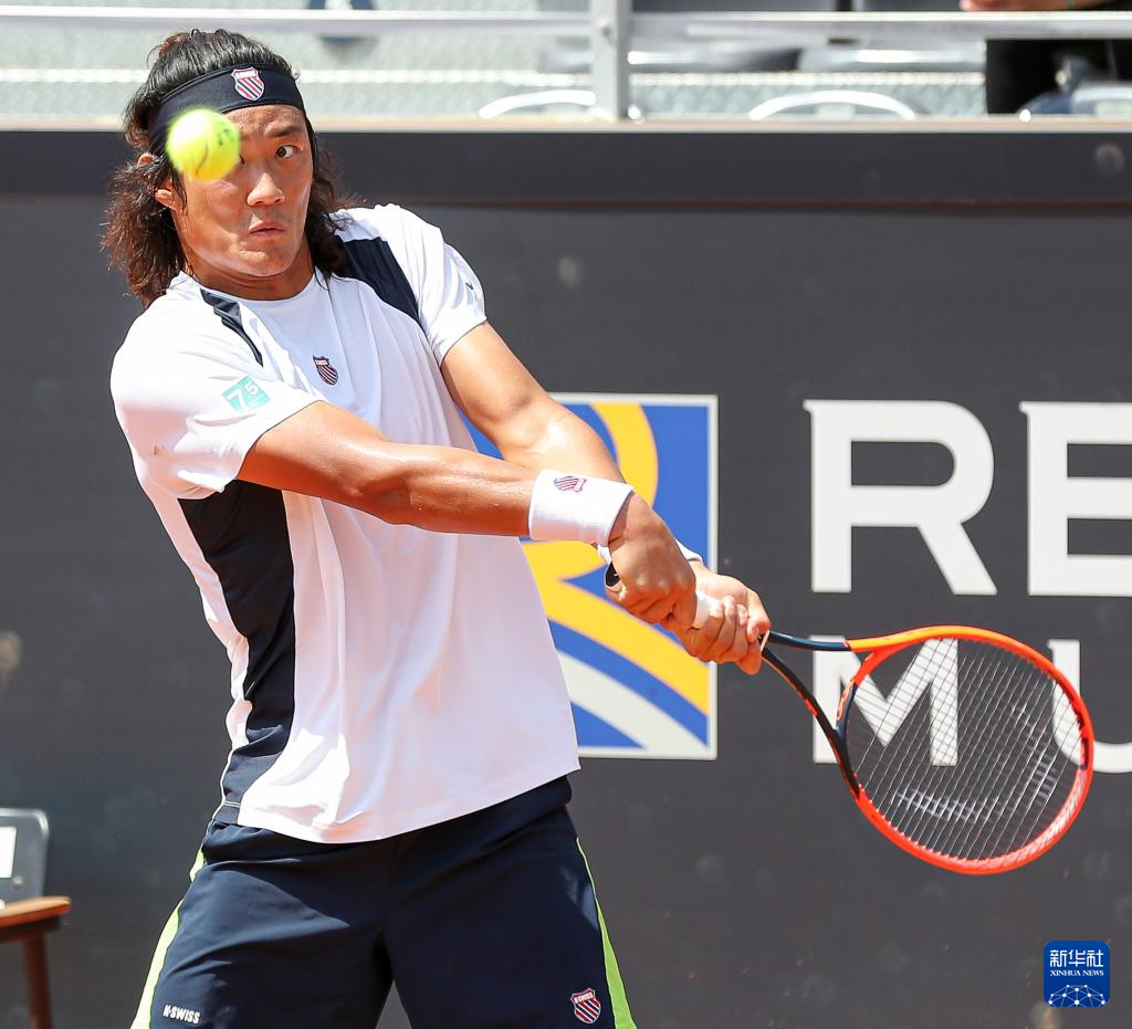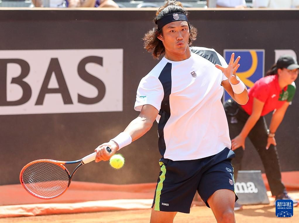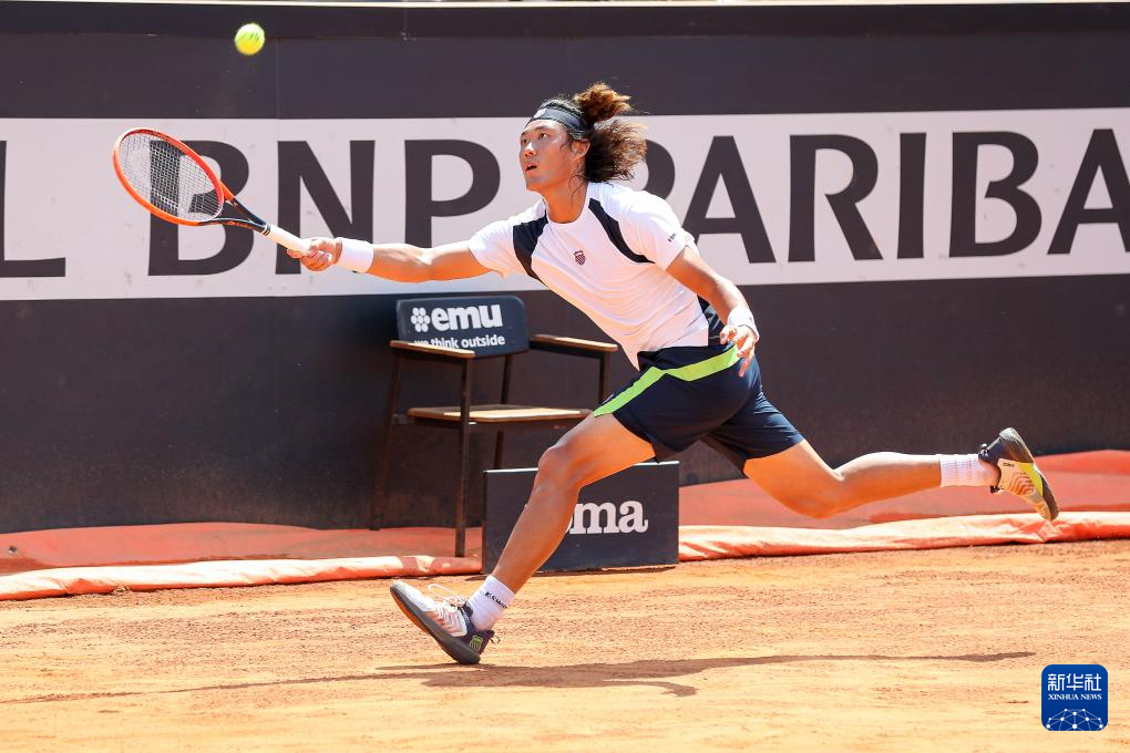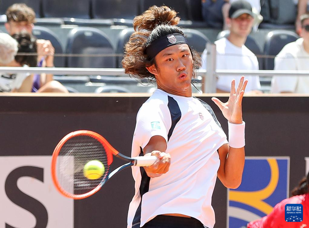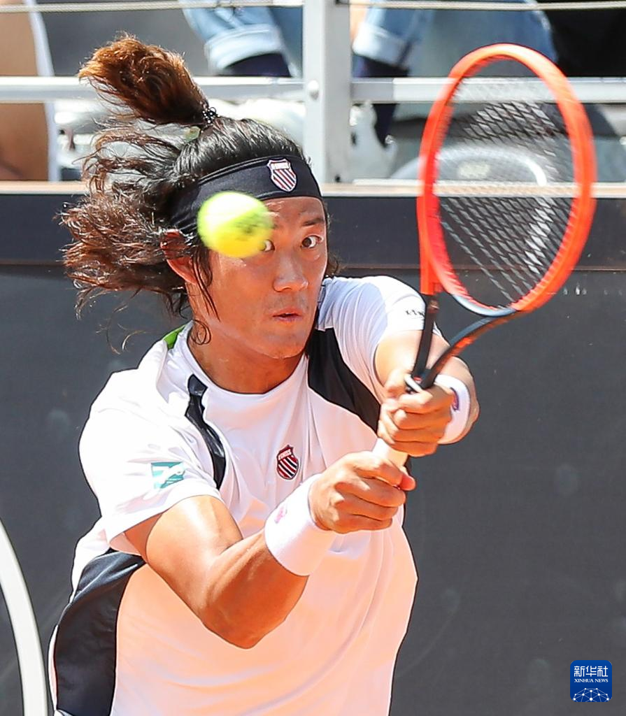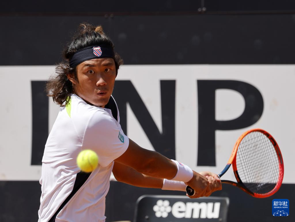 5月14日,张之臻在比赛中回球。新华社发(阿尔贝托·林格利亚摄)