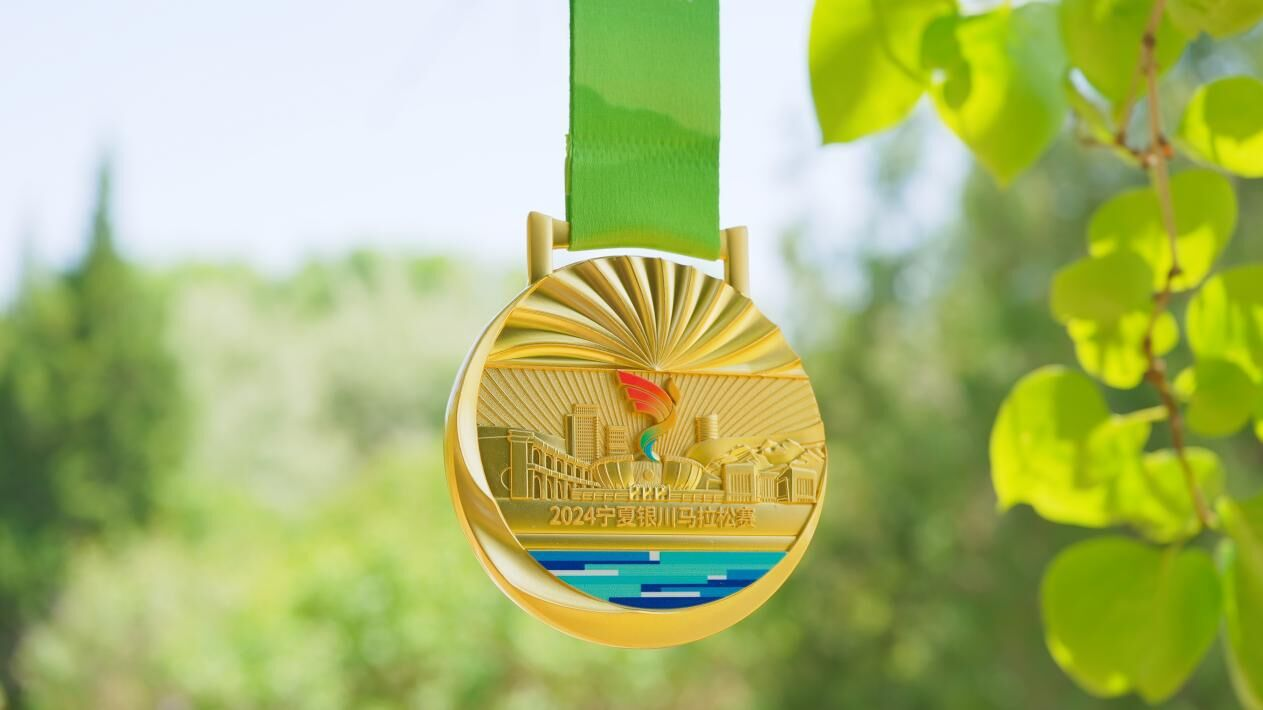 本届银马完赛奖牌正面分为三层结构,上方为初升的太阳,中间为银川地标建筑,黄河水脉贯穿其中,下方蓝色线条象征银川聚焦“智算”“智能”“智产”,打造“算力之都”。奖牌背面元素形似黄河的水波纹理,寓意宁夏在黄河的滋养下生生不息。