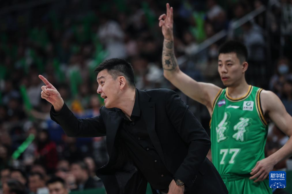 5月17日,辽宁本钢队主教练杨鸣(左)在场边。