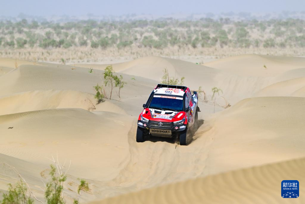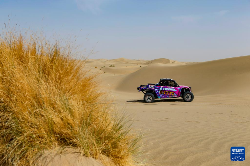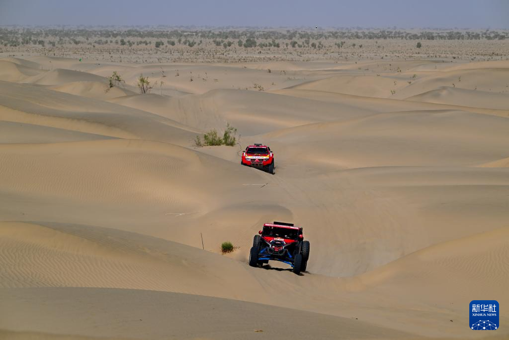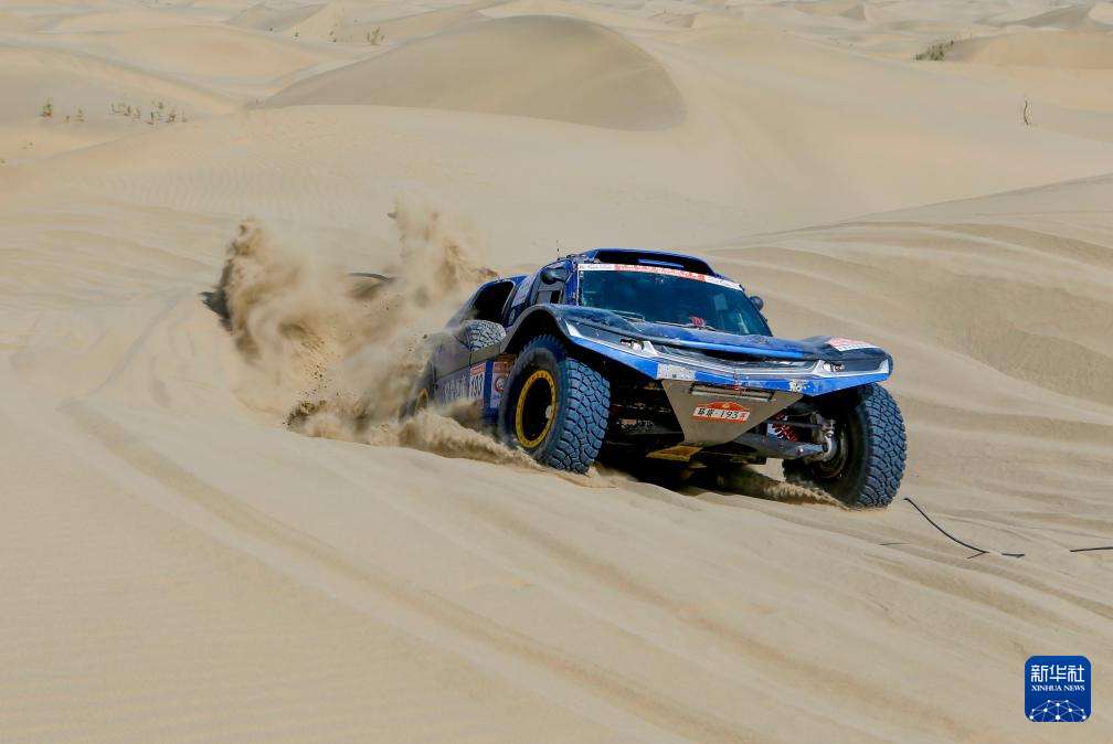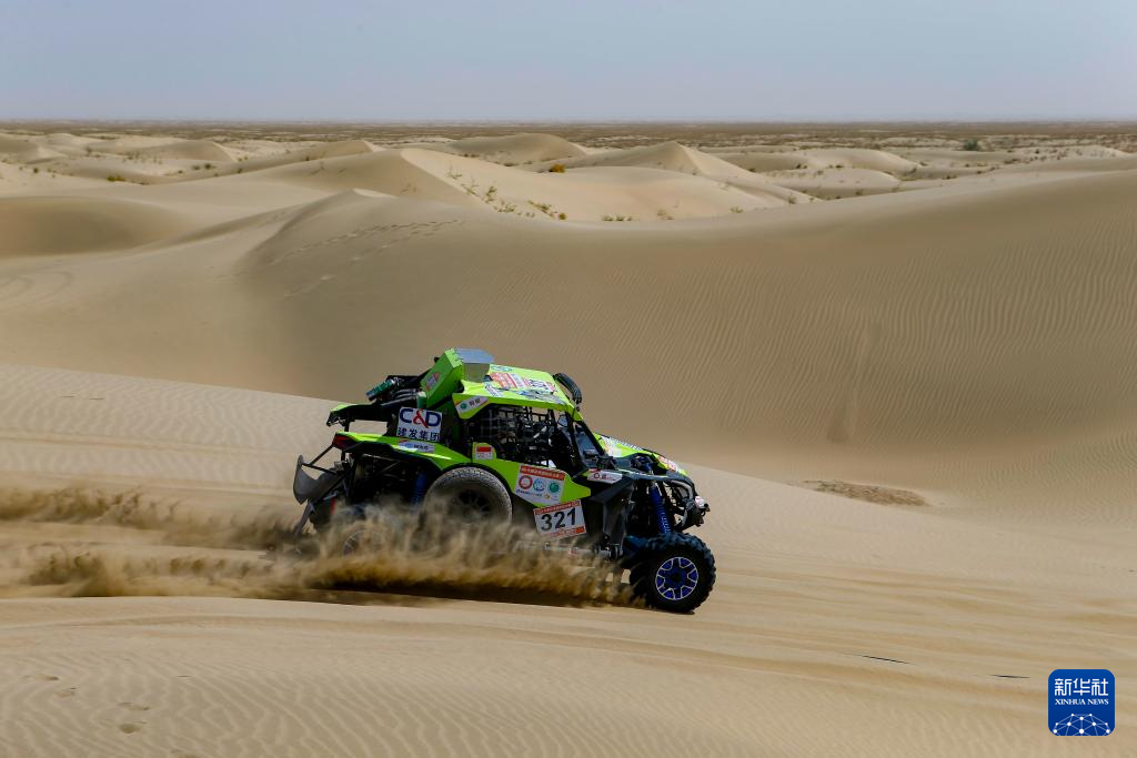 5月22日,牛轰轰车队车手丁元梦、领航员刘原驾驶赛车在比赛中。新华社记者 戴子鸾 摄