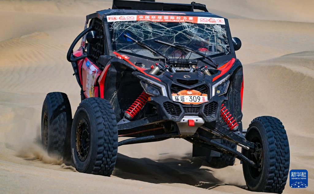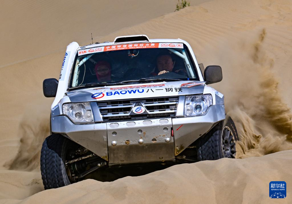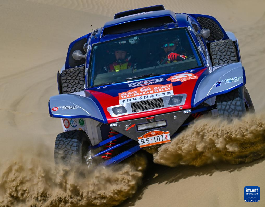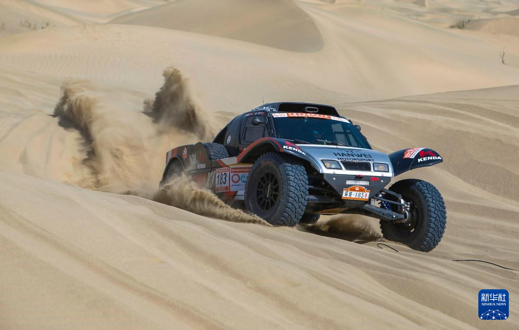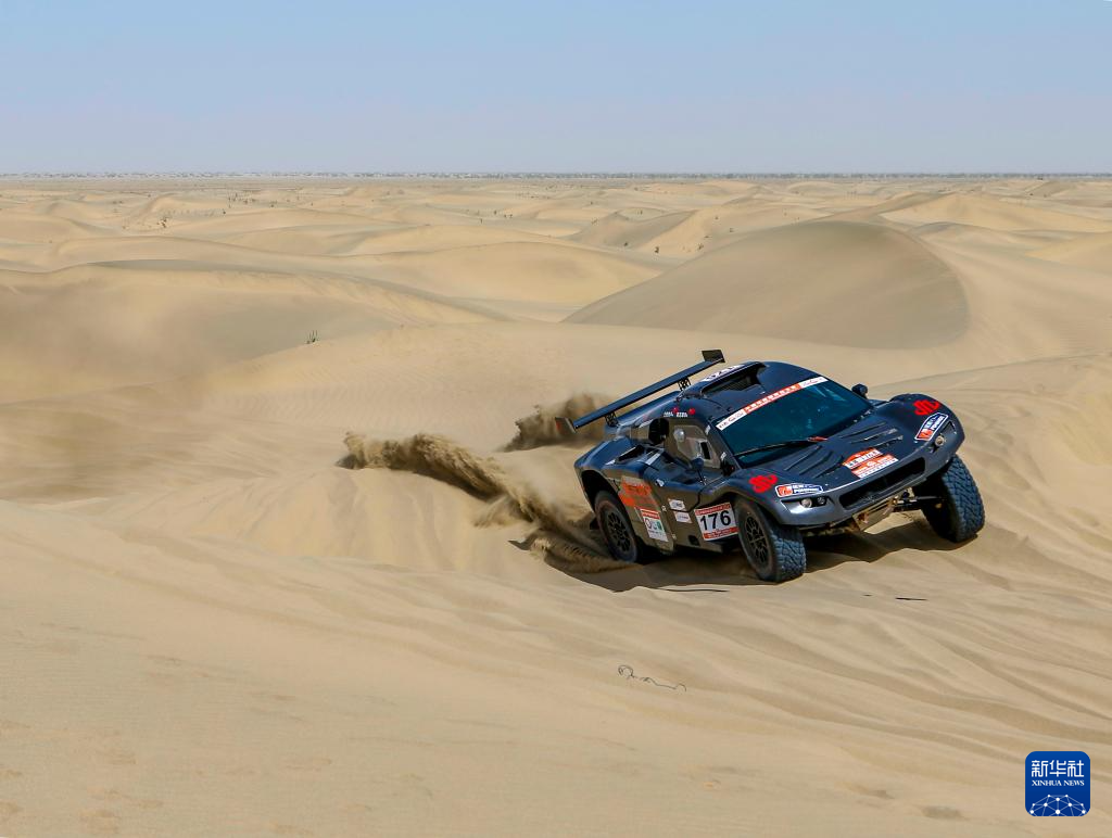 5月22日,牛轰轰车队车手丁元梦、领航员刘原驾驶赛车在比赛中。新华社记者 戴子鸾 摄