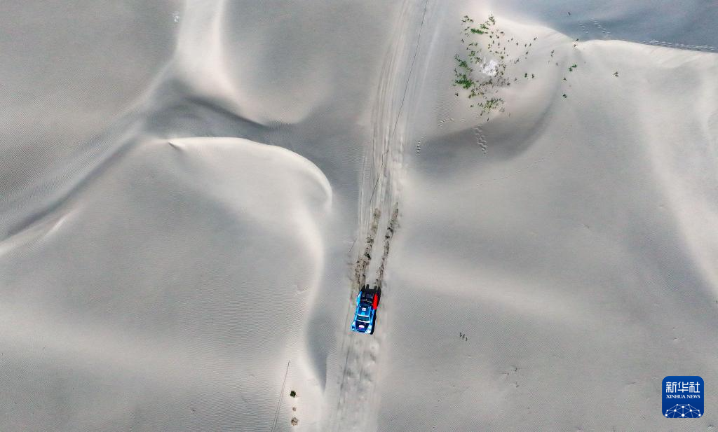 5月22日,RZOIL承德雷锋龙行天下拉力车队车手孙昊、领航员王东东驾驶赛车在比赛中(无人机照片)。新华社记者 陈朔 摄