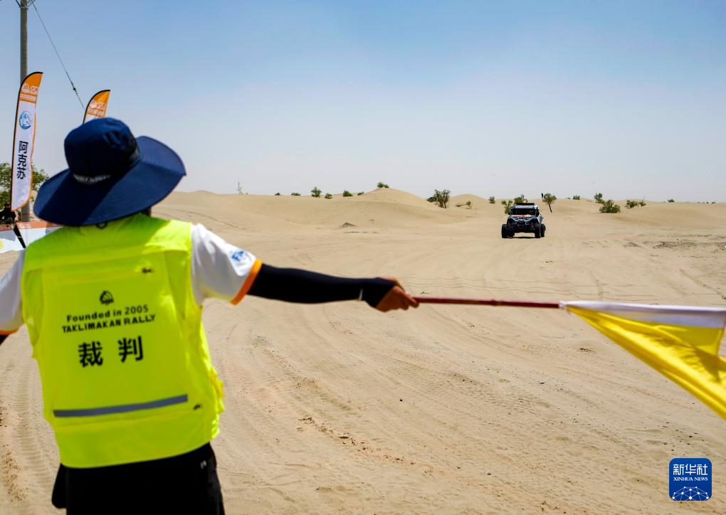5月22日,河南百通拉力车队车手王伯彤、领航员苗志军驾驶赛车在比赛中。新华社记者 戴子鸾 摄