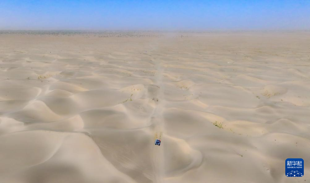 5月22日,唐山漫途游改装多耐减震器车队车手李长彬、领航员冯从彪驾驶赛车在比赛中(无人机照片)。新华社记者 陈朔 摄