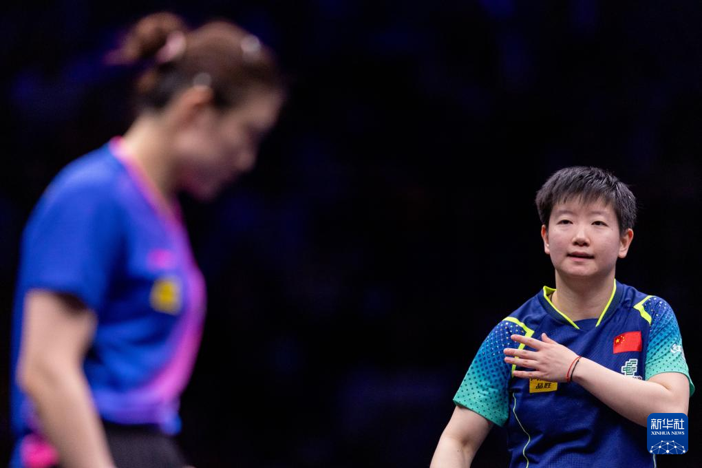 6月2日,孙颖莎(右)在比赛中。新华社记者 黄伟 摄