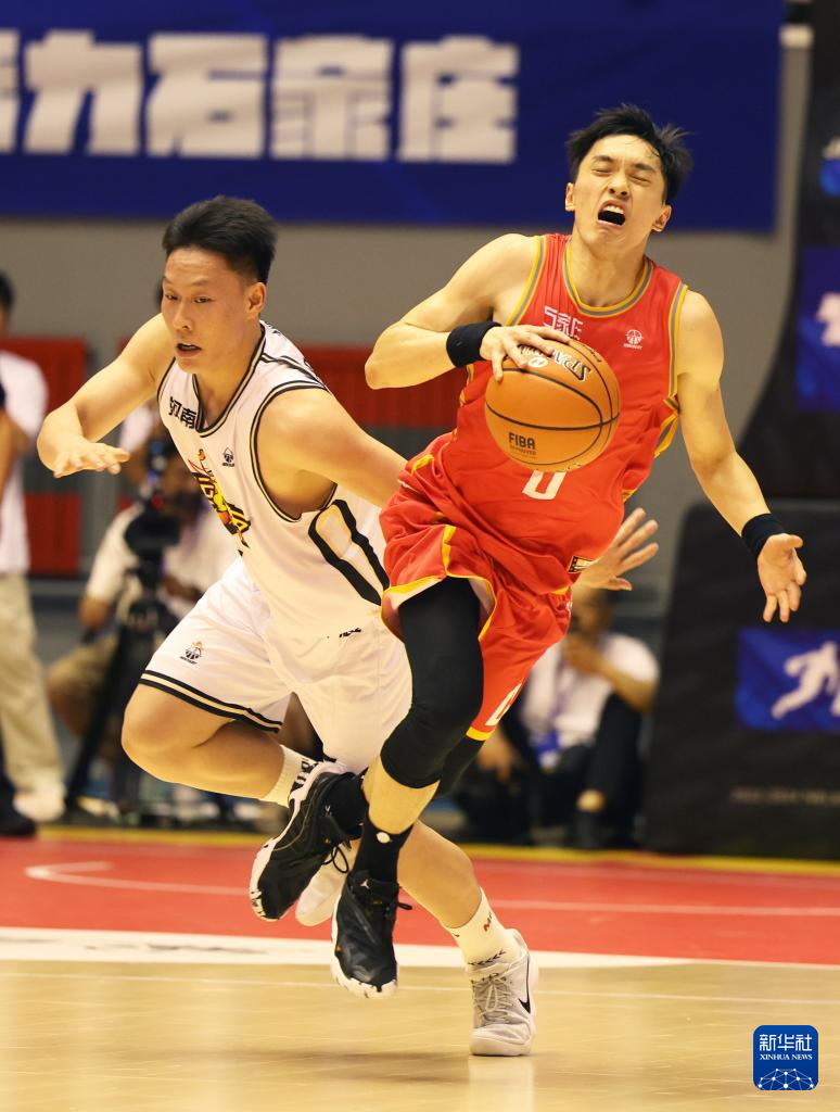6月16日,石家庄翔蓝队球员克拉伦斯·威姆斯(右一)在比赛中运球进攻。新华社发(梁子栋摄)