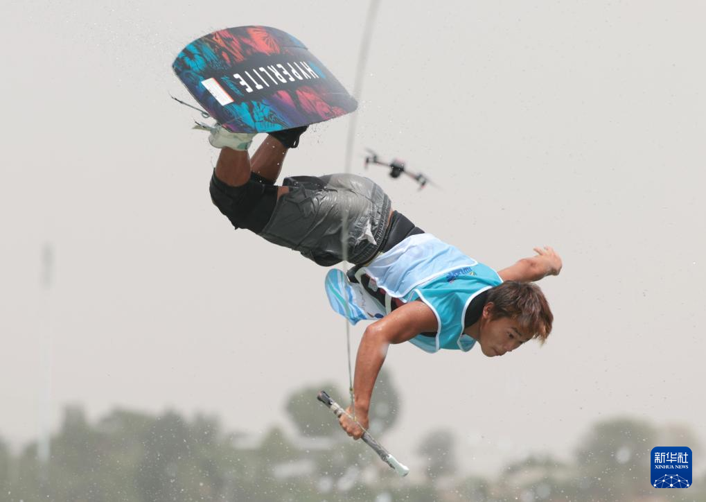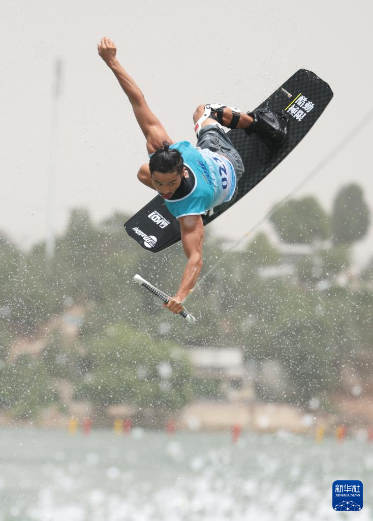 6月23日,日本选手小松浩辉在尾波滑水男子公开组比赛中。最终,他以82.78分的成绩夺得冠军。新华社记者 杨世尧 摄