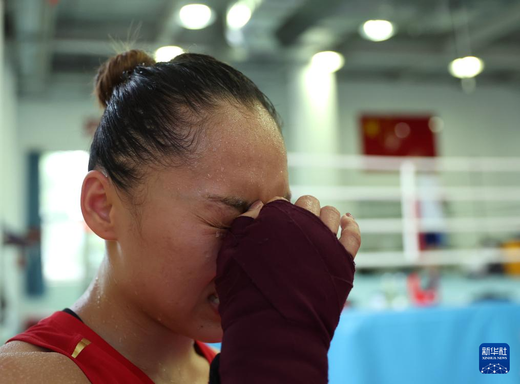 6月29日,国家拳击队队员常园在实战训练后。新华社记者 贾浩成 摄