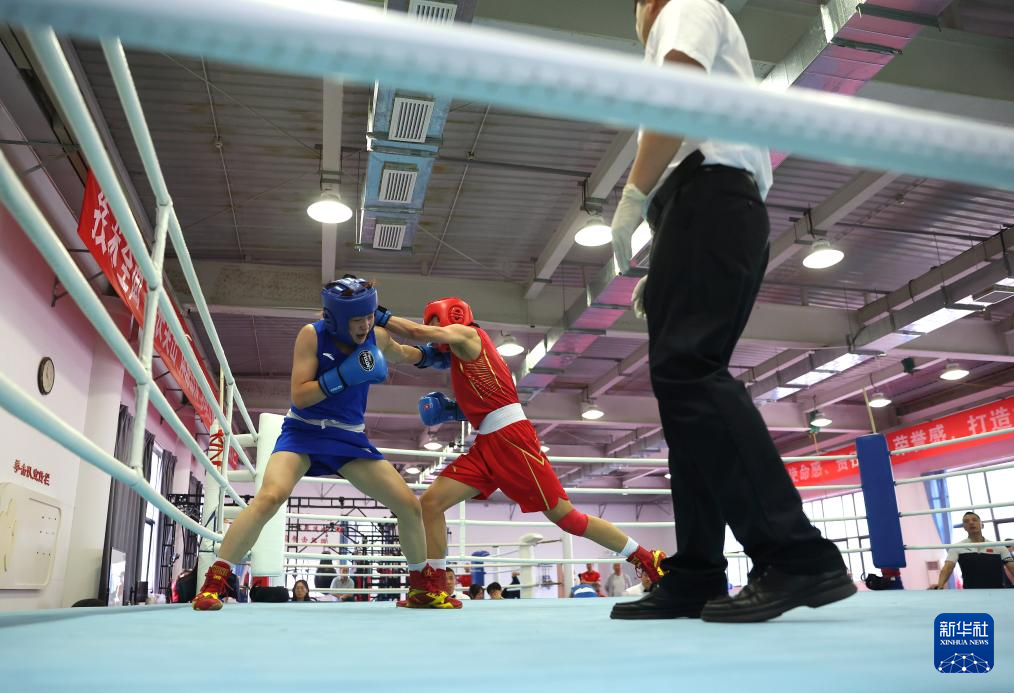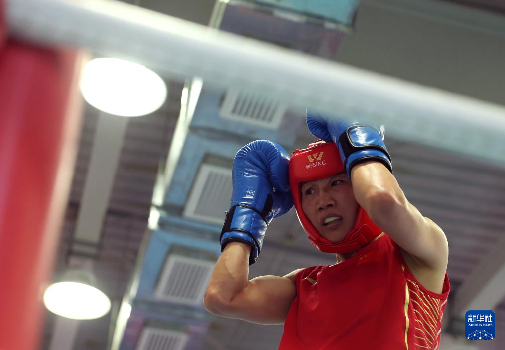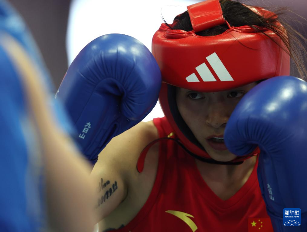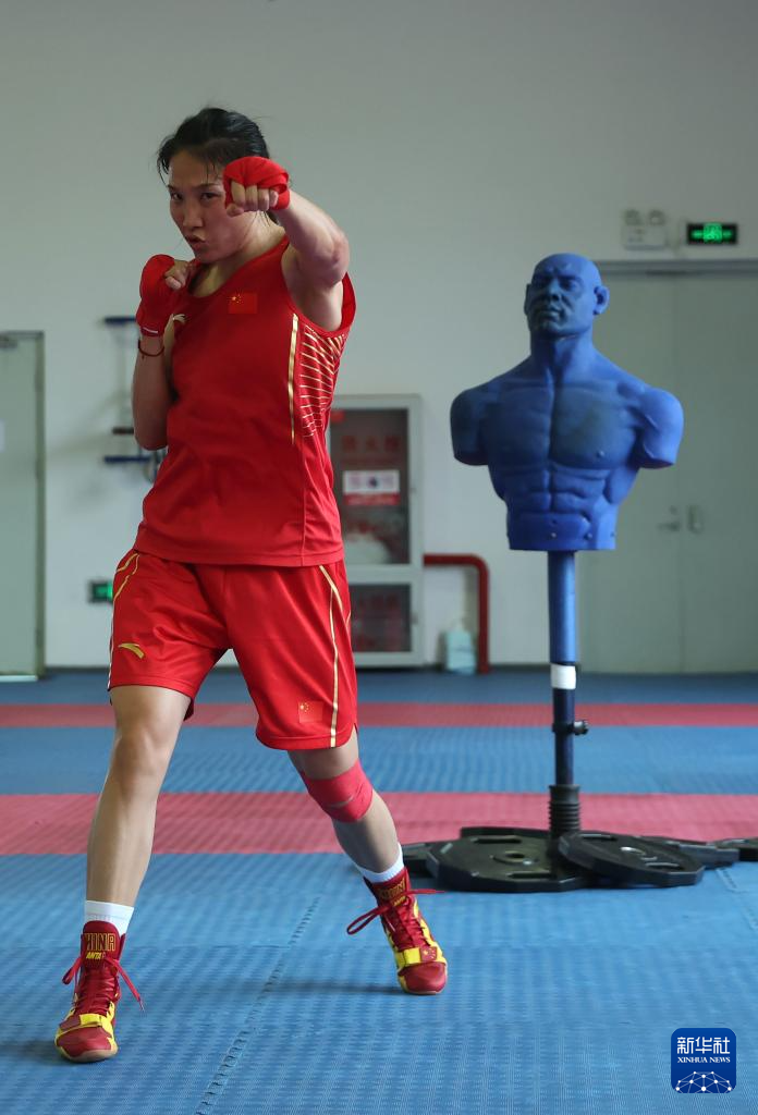 6月29日,国家拳击队队员杨柳在实战训练中。新华社记者 贾浩成 摄